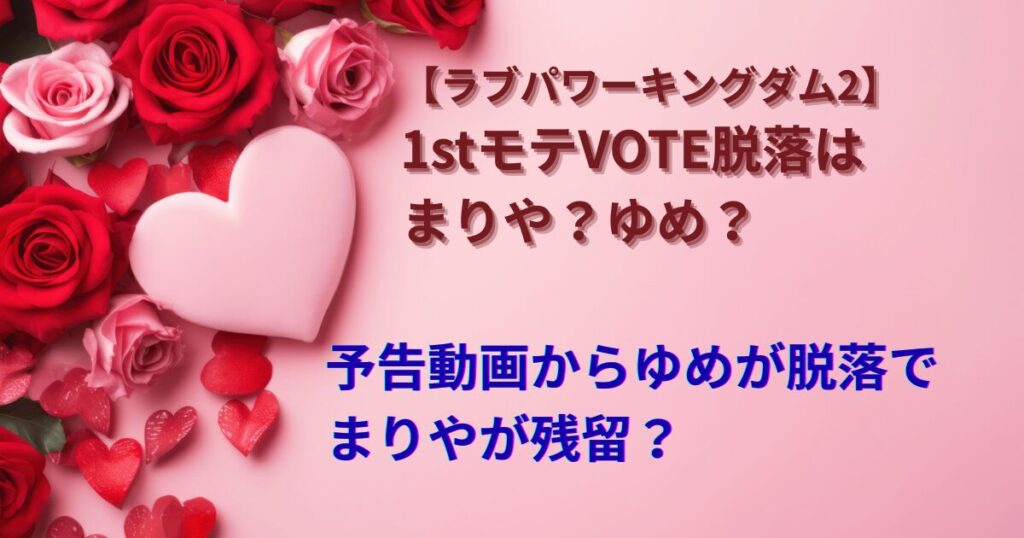【ネタバレ】「ラブパワーキングダム2」脱落はどちら?予告動画からまりや残留ゆめが脱落?