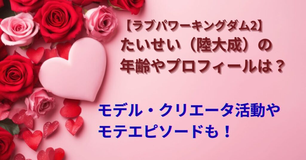 どうも!月見です! ABEMAの恋愛リアリティ番組『ラブパワーキングダム2』が2026年2月11日からスタートしましたね! 今回注目したいのが、モテ界の太陽との異名を持つ たいせい(陸大成)さん。 「シャッフルアイランド」でも話題を集めた彼が、さらにパワ... -