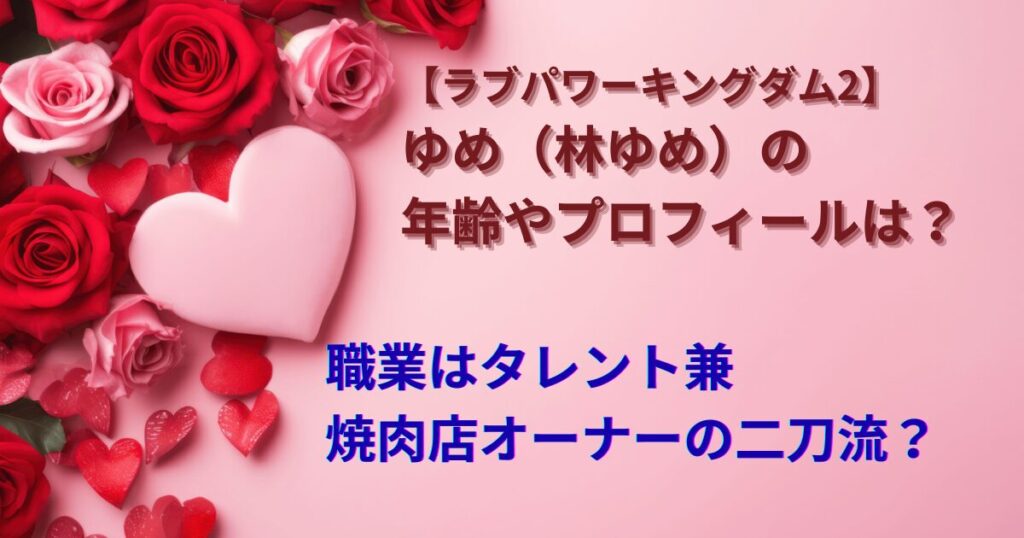 【ラブパワーキングダム2】ゆめ(林ゆめ)のプロフィール!職業はタレント兼焼肉店オーナー!