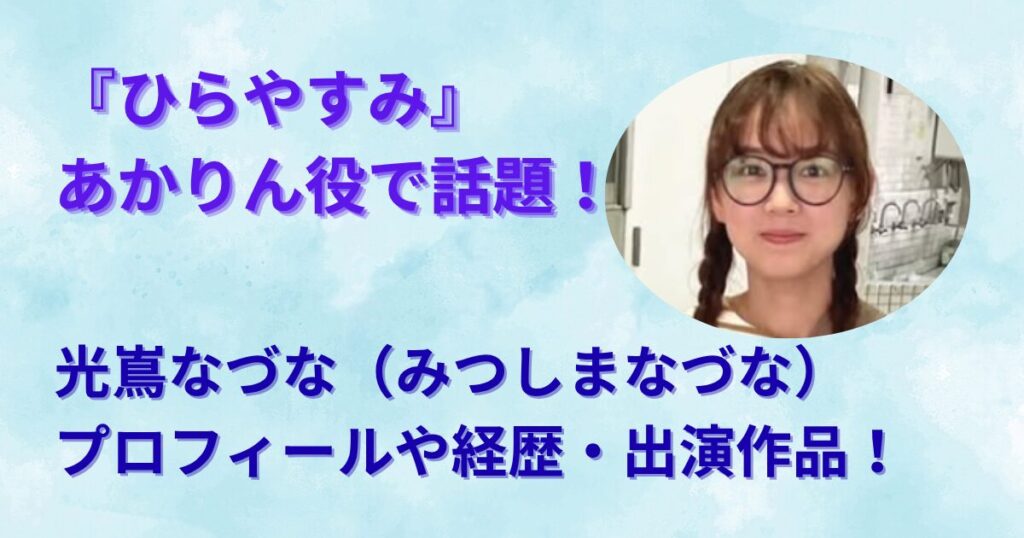 どうも!月見です! 最近大人気のNHK夜ドラの 『ひらやすみ』 面白いですよね!安定の演技力を誇る主演のお二人に注目が集まっていますが、それ以上と言ってもよいくらいに注目されているのが、あかりんこと横山あかり役を演じる 光嶌なづな(みつしま な... -