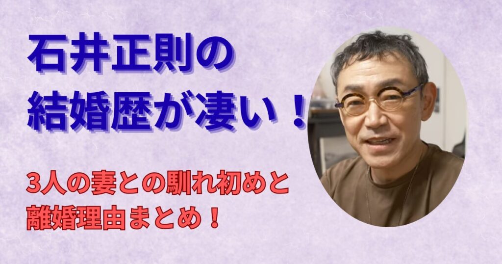 石井正則の結婚歴は3回!亀村愛など元妻との馴れ初めや離婚理由は?