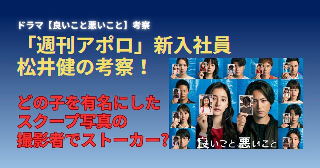 どうも!月見です! 【良いこと悪いこと】4話も衝撃展開がいっぱいでしたね。新たな謎もいくつか浮上してきましたね。 そんな中で気になったのが、どの子と同じ「週刊アポロ」で働く新入社員の 松井 健 3話までは、そこまで目立った動きはなく、単なるかわ...