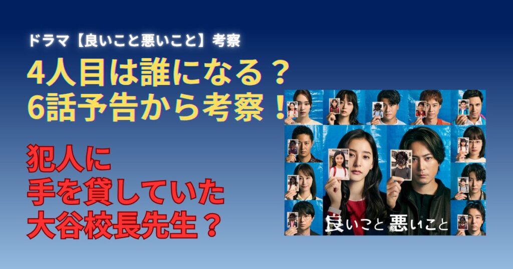 【良いこと悪いこと】6話予告から考察!4人目は校長の大谷先生?
