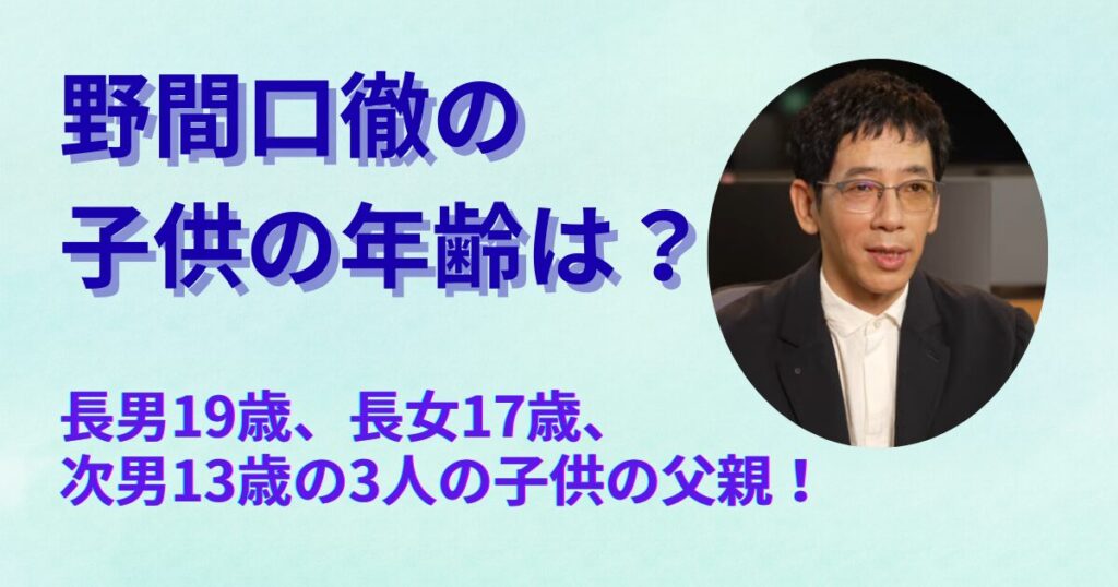 【画像】野間口徹の子供の年齢や名前は?13歳と19歳の息子と17歳の娘の父親!