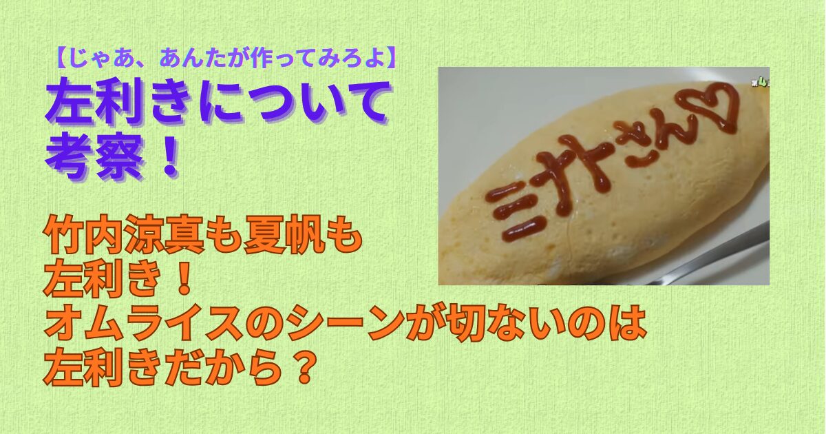 このオムライスを作るシーンでも左利きであることが2人の結びつきを表現していますよね。