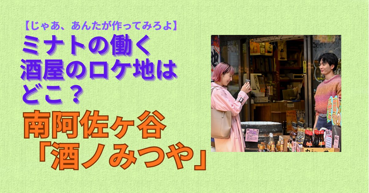 今回は、【じゃあ、あんたが作ってみろよ】のミナトくんが働く酒屋さんのロケ地の情報をお届けします。