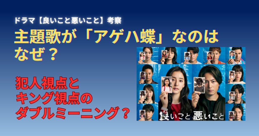 どうも!月見です! ドラマ【良いこと悪いこと】 好調な滑り出しをみせているみたいですね。犯人考察の盛り上がりが注目されているようですが、同じくらい主題歌にも注目が集まっているようです。 そうですよね。まさか令和の時代に平成の名曲 『アゲハ蝶... -