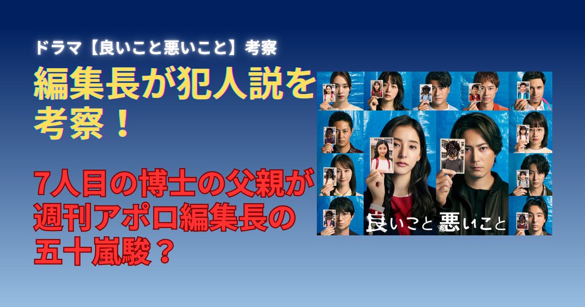 まとめ 【良いこと悪いこと】編集長が犯人説を考察!五十嵐駿が7人目の博士の父親?