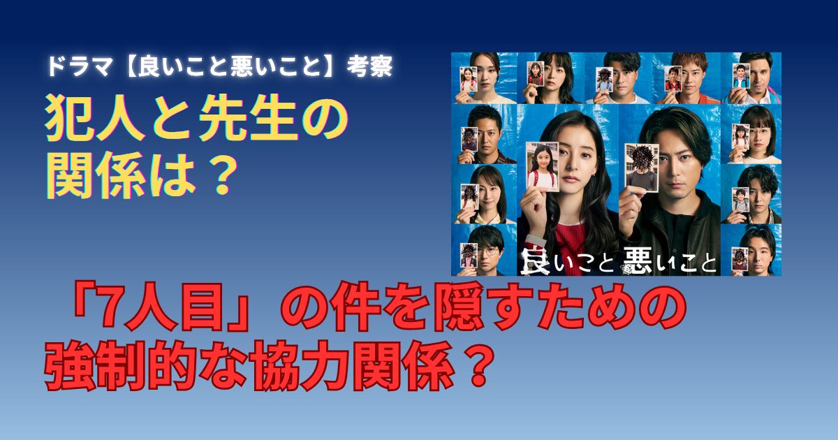 【良いこと悪いこと】犯人と校長先生の関係は?7人目の存在に関わることで強制的に協力させられた?