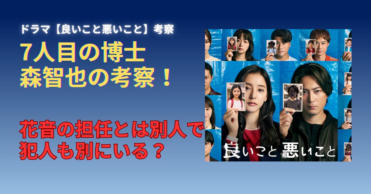 まとめ 【良いこと悪いこと】森智也は7人目の博士だが花音の担任とは別人で犯人でもない?