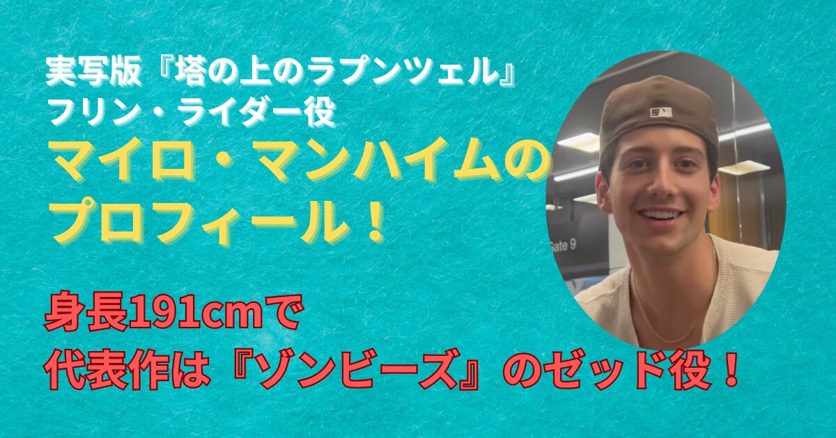 マイロ・マンハイムは実写版『塔の上のラプンツェル』フリン・ライダー役!
