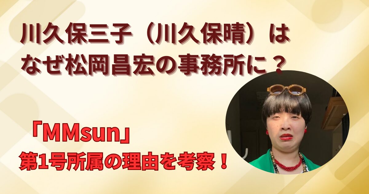 今回は、松岡昌宏さんが立ち上げた事務所「MMsun」に所属する唯一のタレント川久保三子さんの情報をお届けしたいと思います。